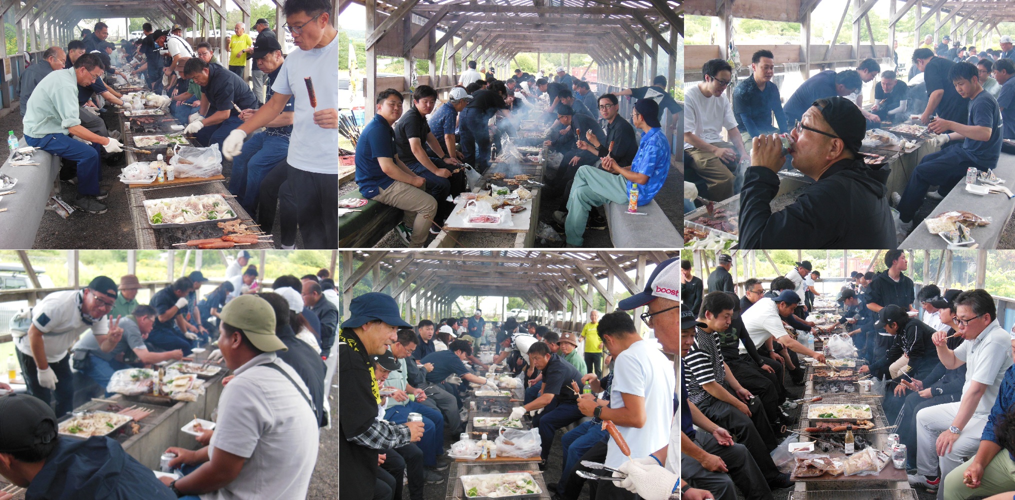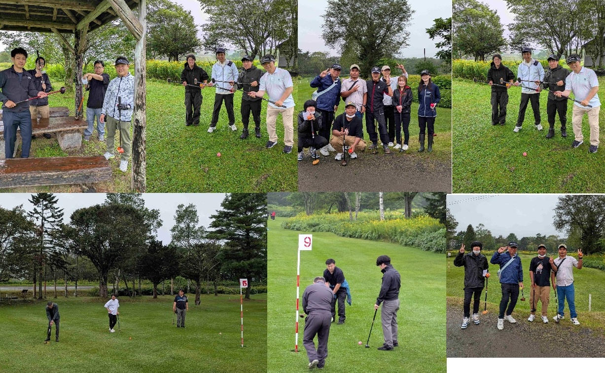 令和7年 親睦パークゴルフ大会の開催 釧路市管工事業協同組合と釧根空調衛生工事業協会、釧路市水道事業協会の3団体合同親睦パークゴルフ大会を高原パークゴルフ場にて開催しました。当日は69名が参加し、プレー終了後には焼肉で親睦を深めました。 【パークゴルフ大会】 【親睦会(焼肉)】 イ